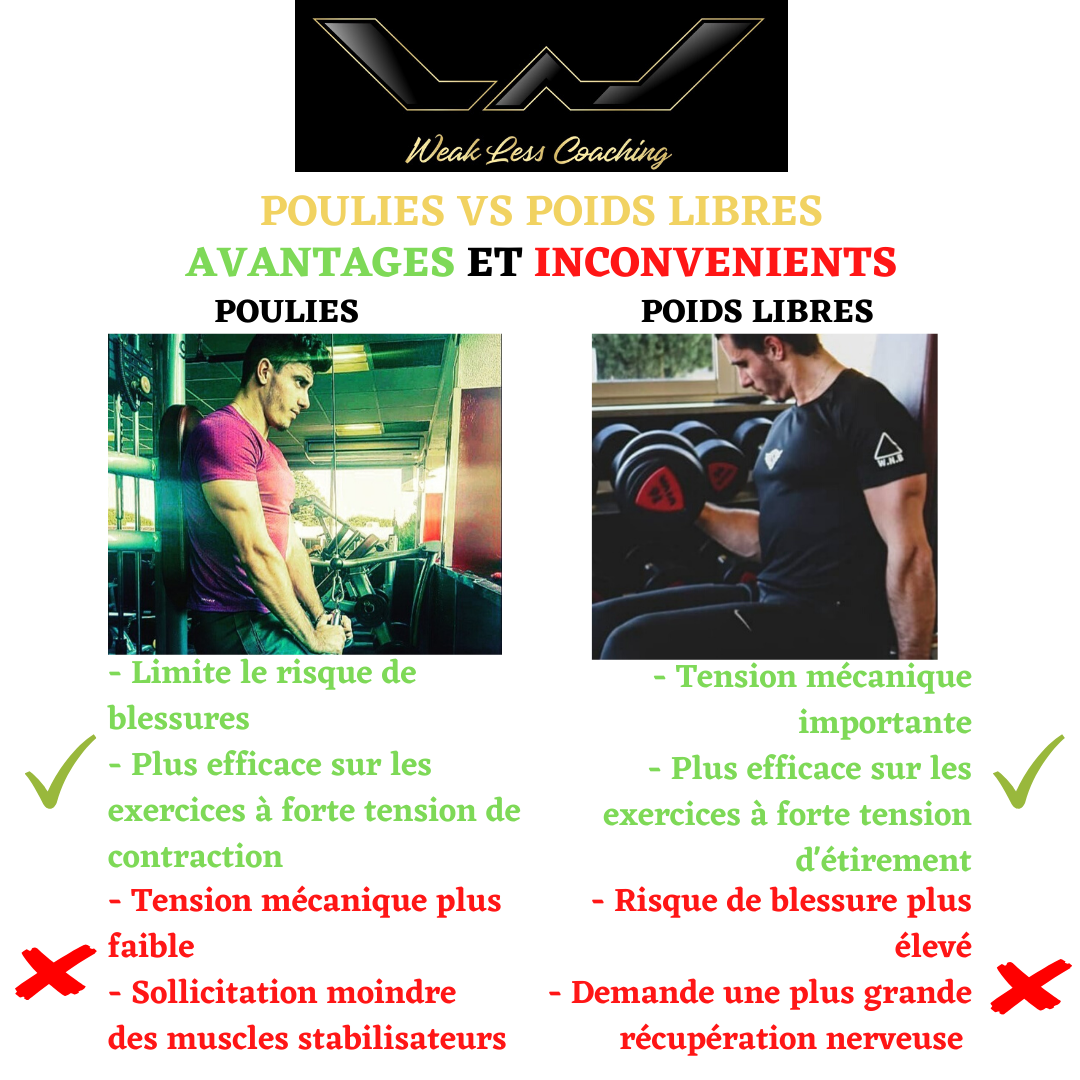 Nombreux sont les pratiquants de musculation qui se demandent s'ils doivent privilégier le travail aux poulies ou aux poids libres.